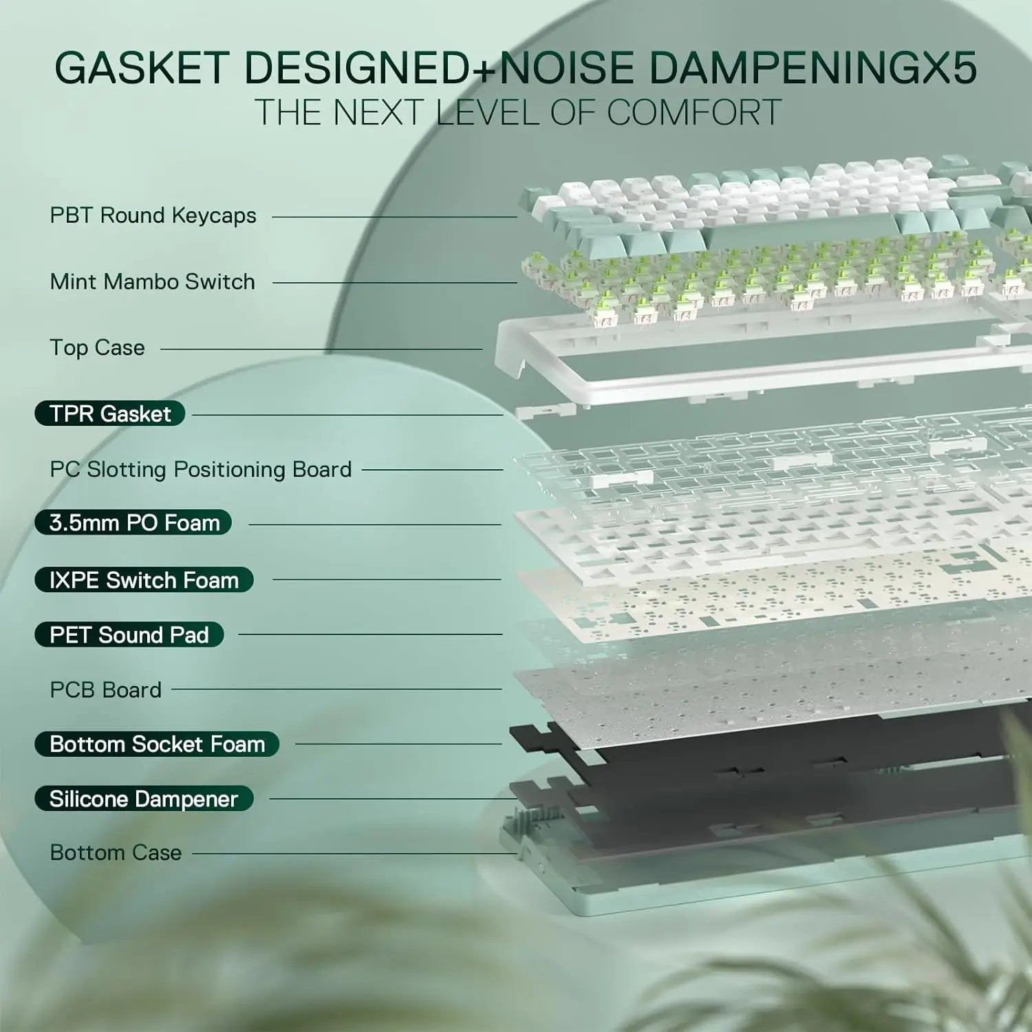 Custom Mint Mambo Switch - With thick-lubed custom linear switches combo with a gasket form factor, K686 MAX features cushioned rich linear travel with silky creamy and cozy typing feedback. The brand new upgraded socket is nearly all switches(3/5 pins) compatible.